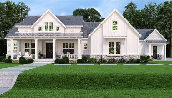 1 story or single level open concept ranch floor plans (also called ranch style house plans with open floor plans)—a modern layout within a classic architectural design.